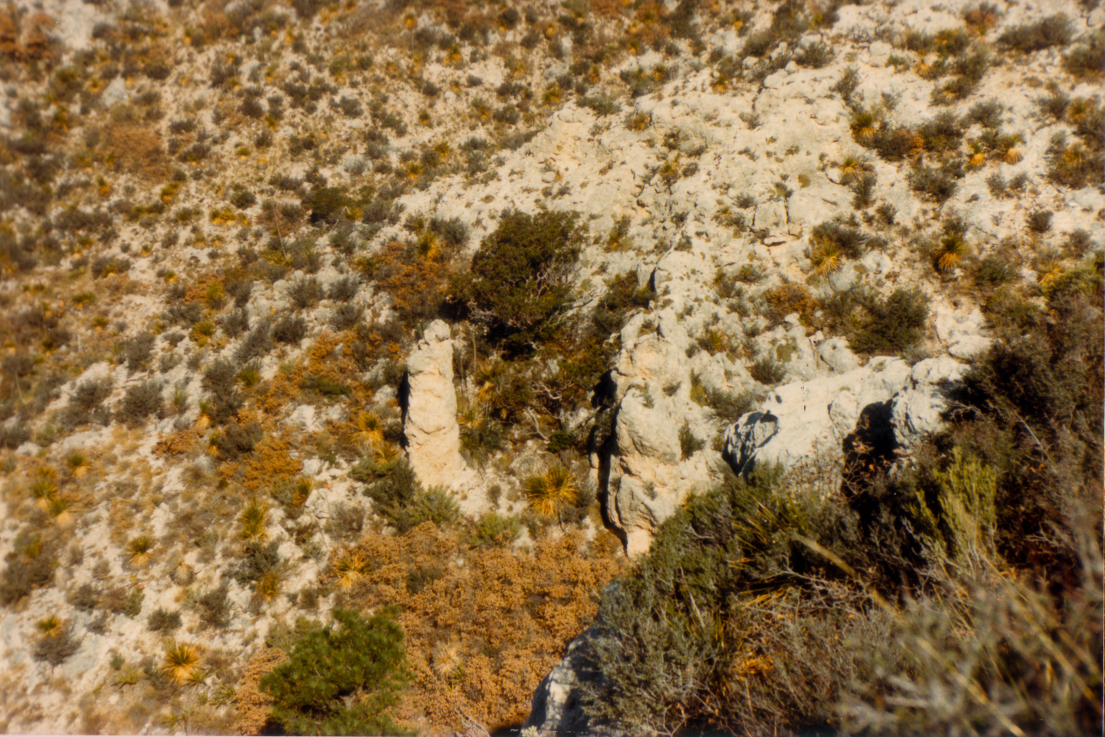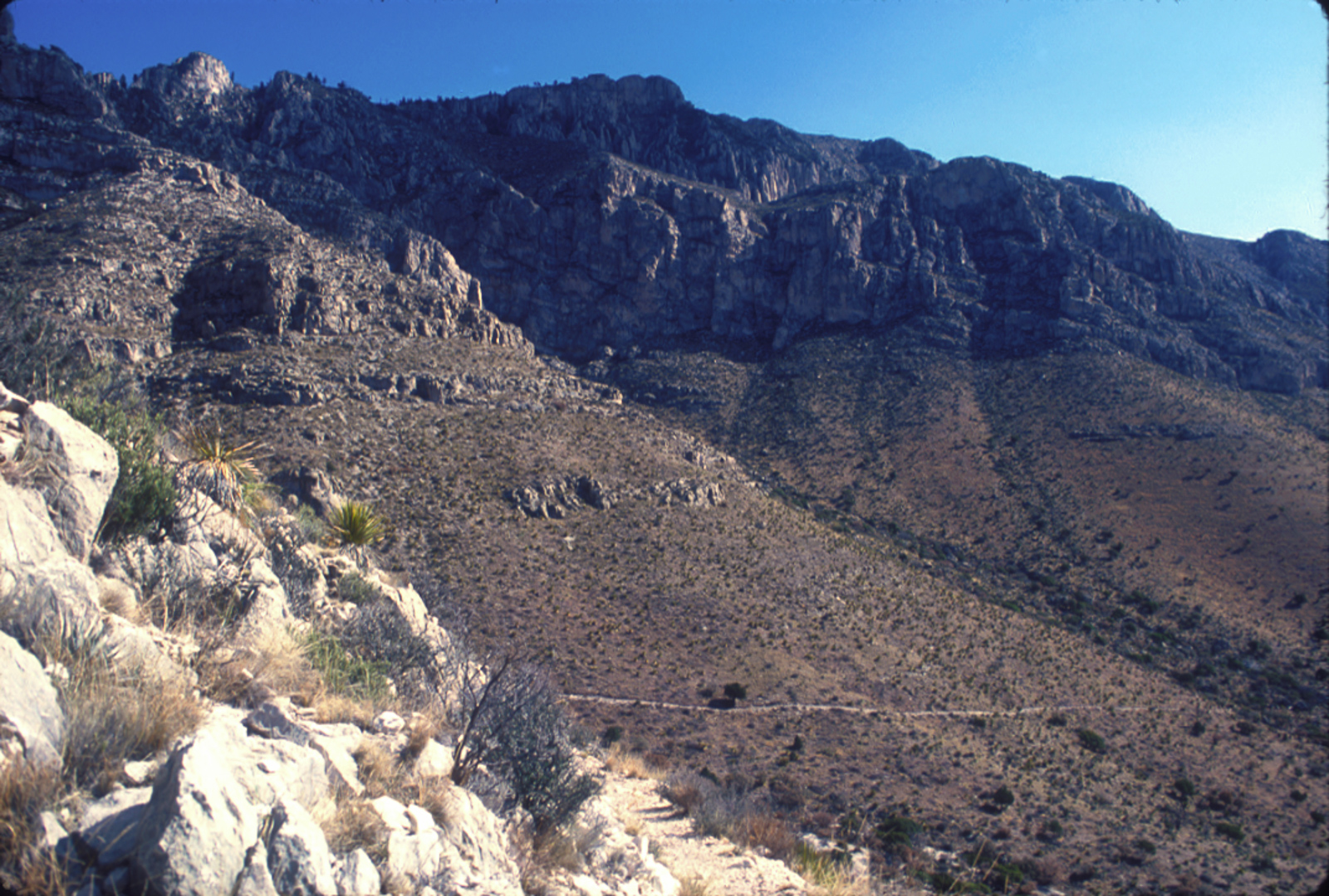 I recall that this was my first backpacking trip ever. I’ll have to go through my notes and photos to recollect exactly what I did, and will update this post accordingly. I did three (!!) backpacking trips in Guadalupe Mountains National Park (GUMO) in 1986 so while many details are clear, the itineraries take some figuring out on my part.
