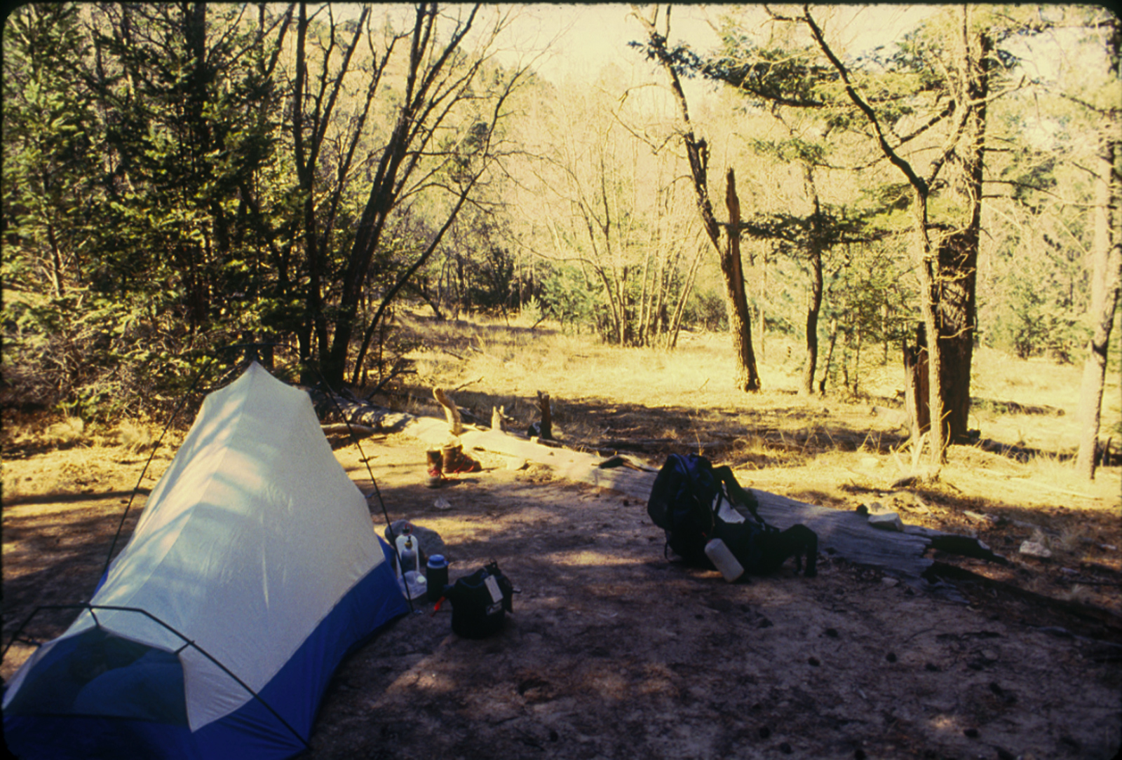 Looking around for the designated site I was supposed to occupy proved futile, owing to my inexperience. I’d thought it would be close to the trail and didn’t find it that evening, so I set up in the only clear flat spot I could find which was unfortunately right next to the trail (mea culpa: this is a huge no-no but I was dumb then).
